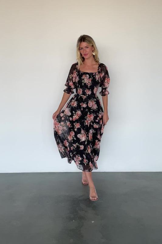 Fabian Jacquard Midi Dress | Peach + Black Floral