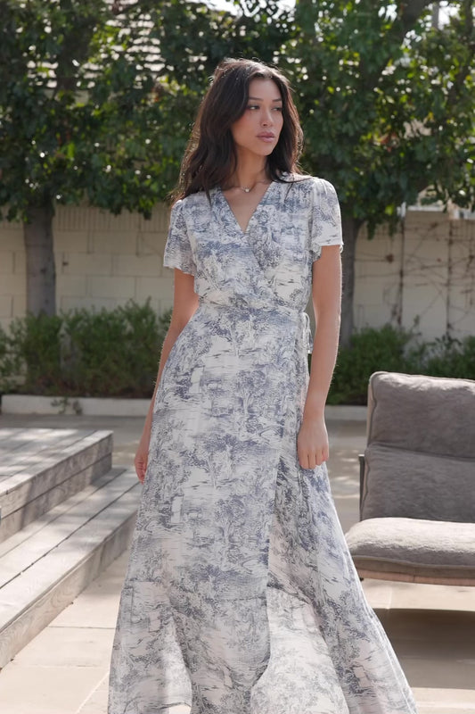 Breanne Faux Wrap Maxi Dress | Slate Blue