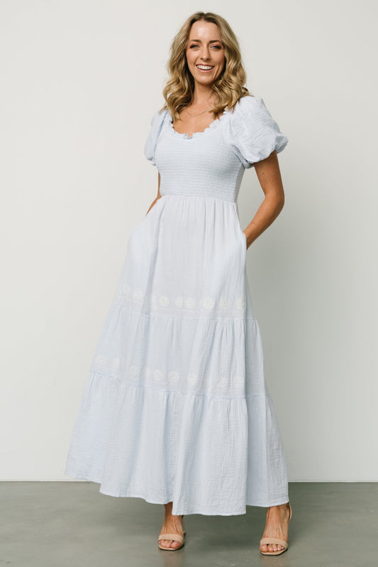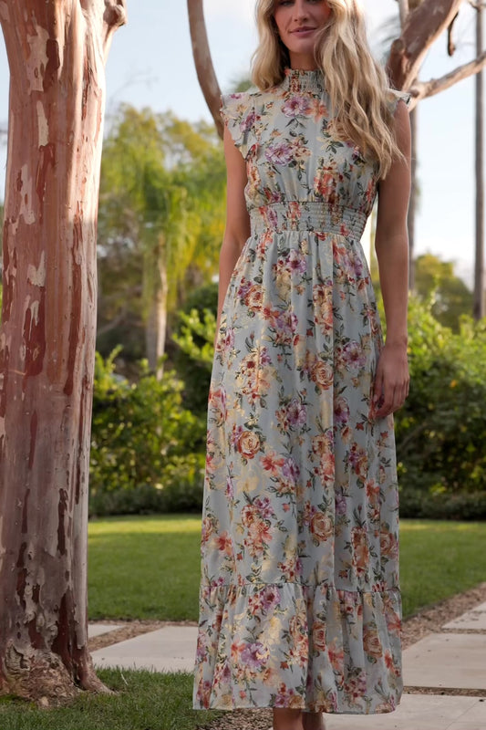 Kearny Ruffle Maxi Dress | Light Blue Floral + Gold