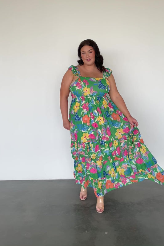 Naomi Short Sleeve Maxi Dress | Dark Green Floral