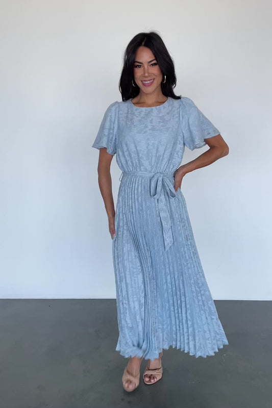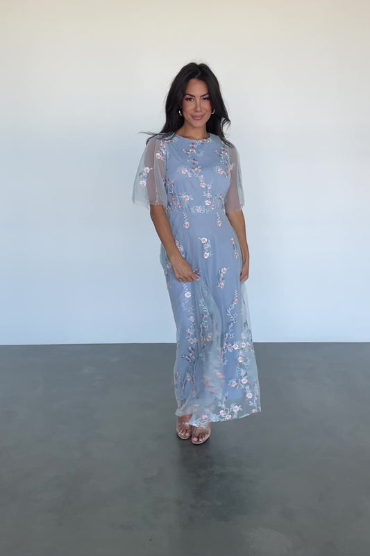 Arabella Embroidered Tulle Maxi Dress | Light Blue + Blush