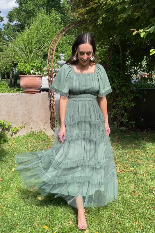Magdalena Tulle Maxi Dress | Eucalyptus