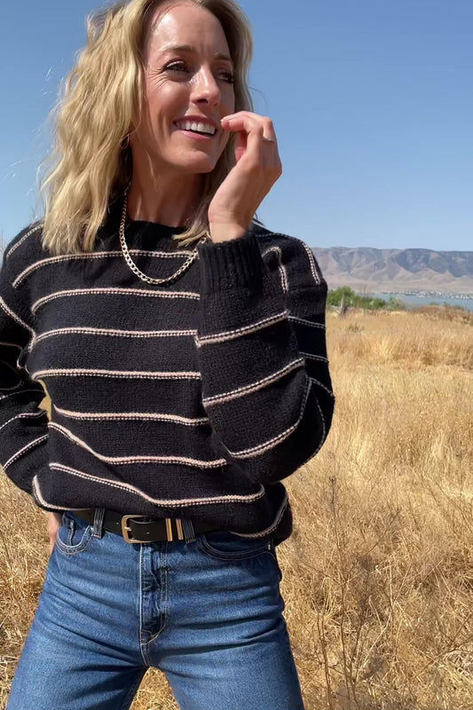 Alanis Stripe Sweater | Black + Camel