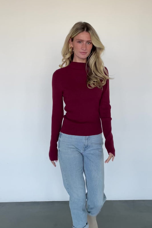 Guadalupe Mock Neck Sweater | Ivory + Chocolate