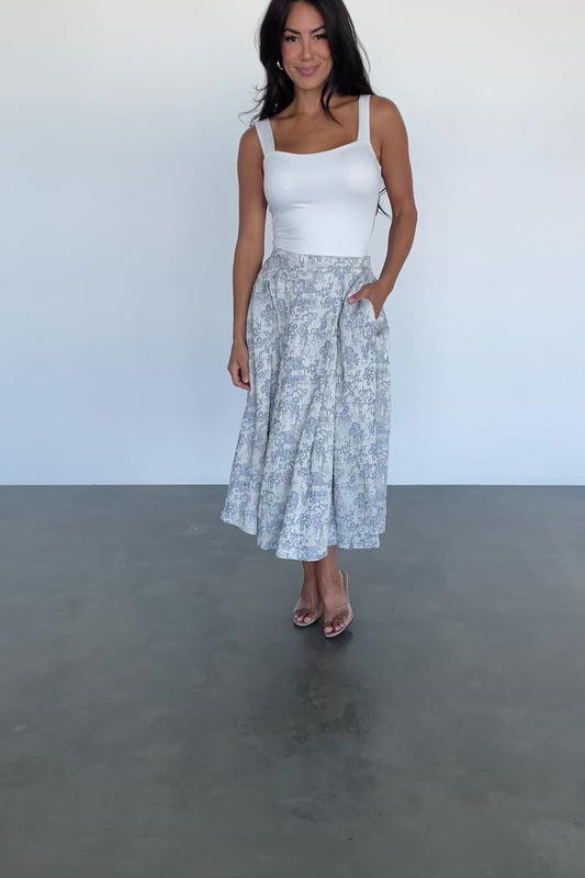 Jeanne Pleated Midi Skirt | Pearl + Light Blue