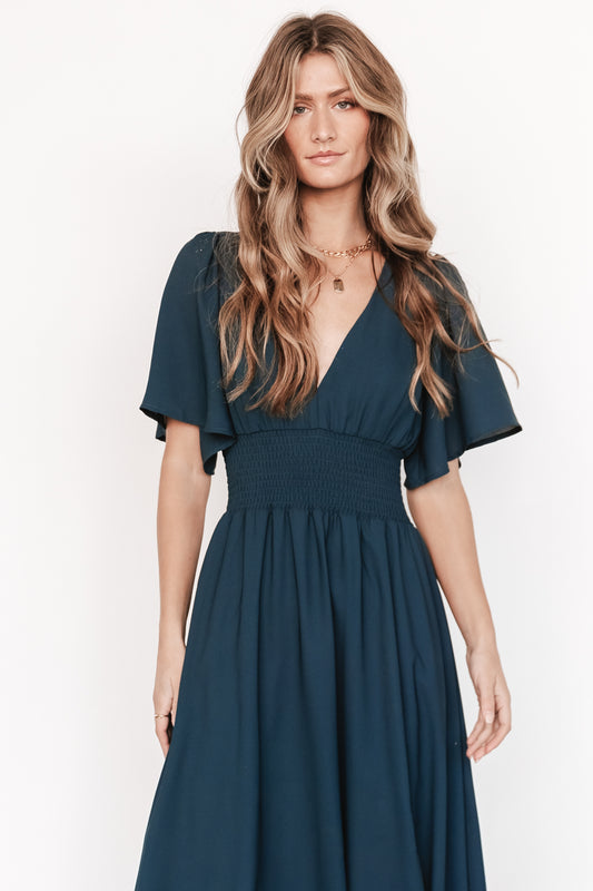 Karol Puff Sleeve Midi Dress | Blue Multi
