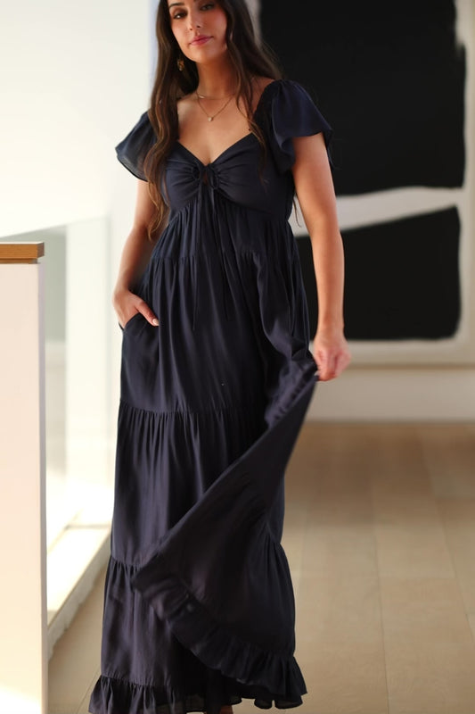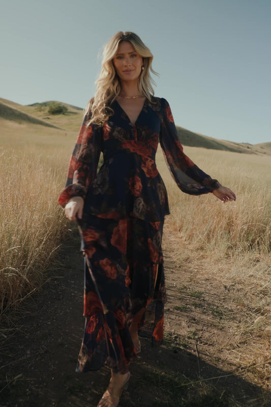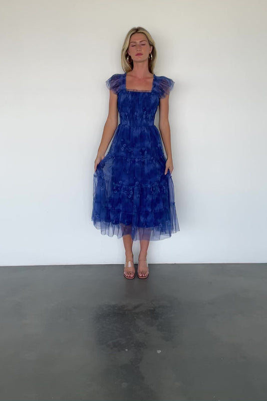 Kamila Tulle Maxi Dress | Dark Blue Floral