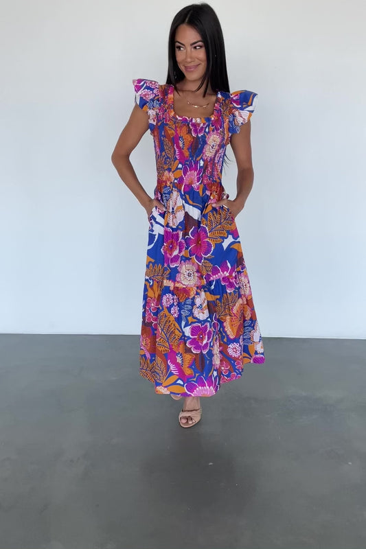 Dominique Midi Dress | Cobalt + Fuchsia Multi