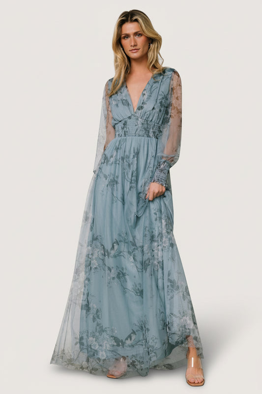 Layla Tulle Maxi Dress | Dusty Blue Floral
