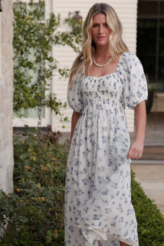 Naomi Short Sleeve Maxi Dress | Dusty Blue Floral