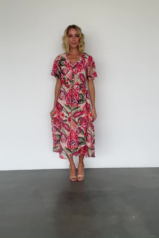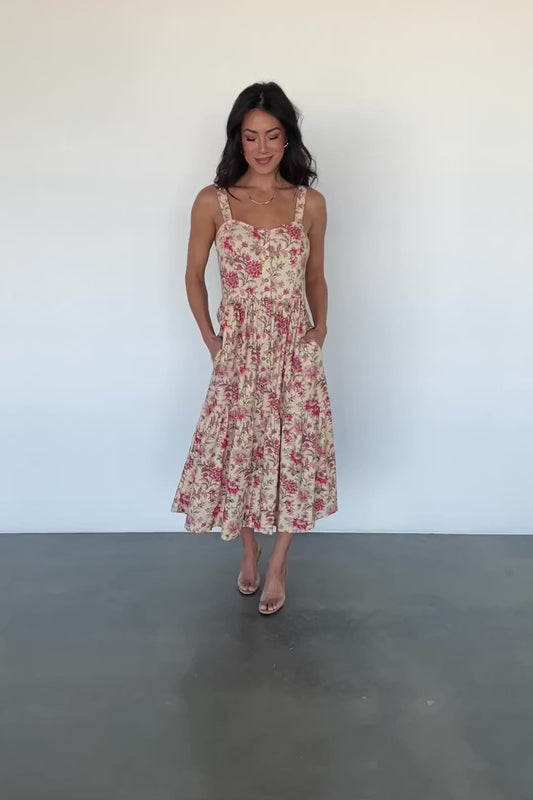 Ashlee Embroidered Midi Dress | Cream + Lavender Floral