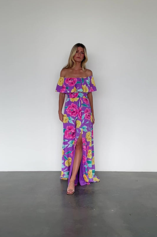 Talia Off Shoulder Maxi Dress | Purple Floral