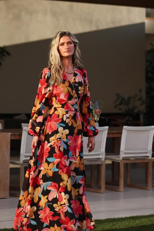 Katinka Wrap Maxi Dress | Tropical Night Floral