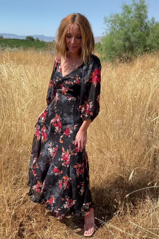 Katinka Wrap Maxi Dress | Black Multi Floral