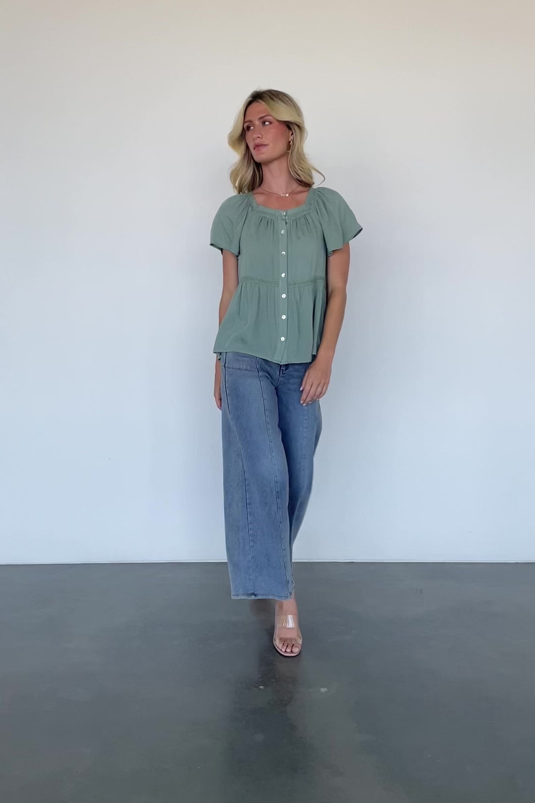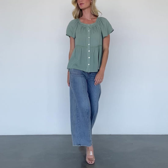 Paired with our Emmi Mid Rise Wide Leg Jeans in Medium Wash