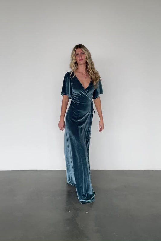 Meghan Velvet Wrap Maxi Dress | Persian Blue