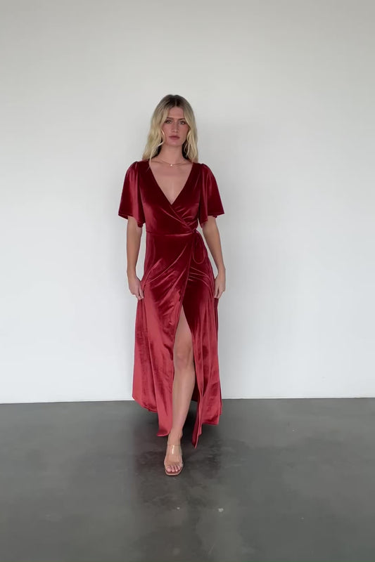 Meghan Velvet Wrap Maxi Dress | Terracotta