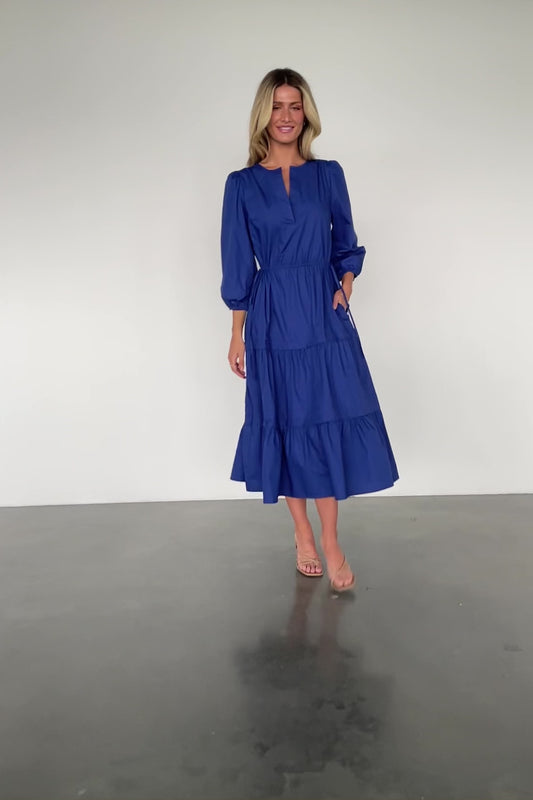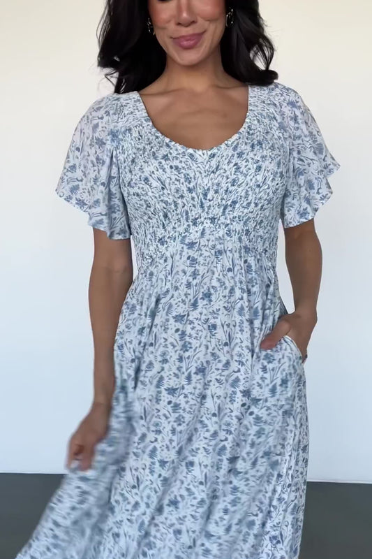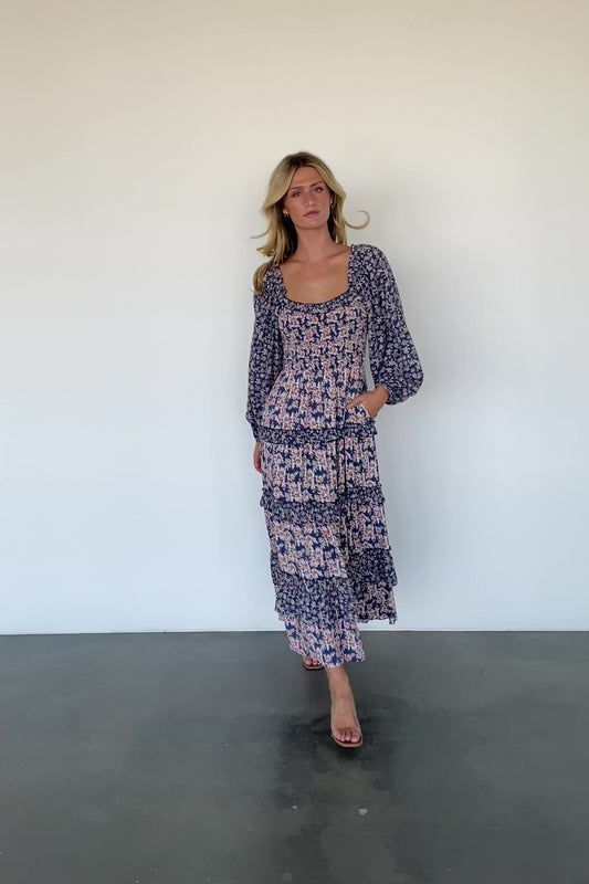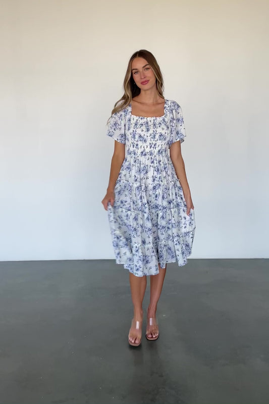 Lilla Tiered Midi Dress | Off-White + Blue Floral