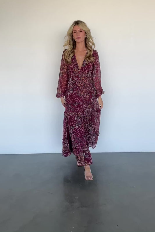Bowman Deep V Maxi Dress | Burgundy Multi