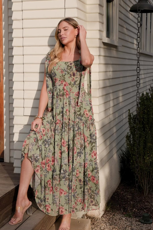Tessa Tiered Maxi Dress | Green Floral