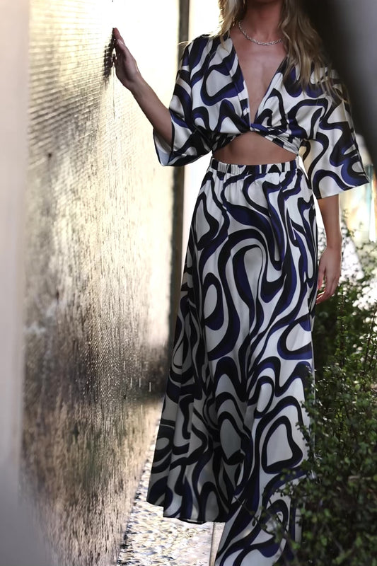 Giada Wide Leg Jumpsuit | Navy + Off White