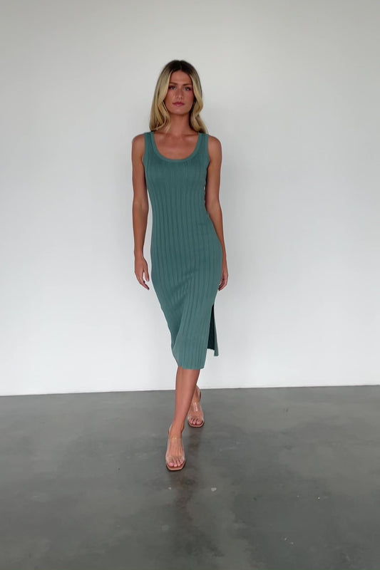 Rue Ribbed Midi Dress | Eucalyptus