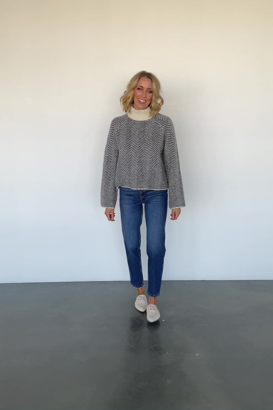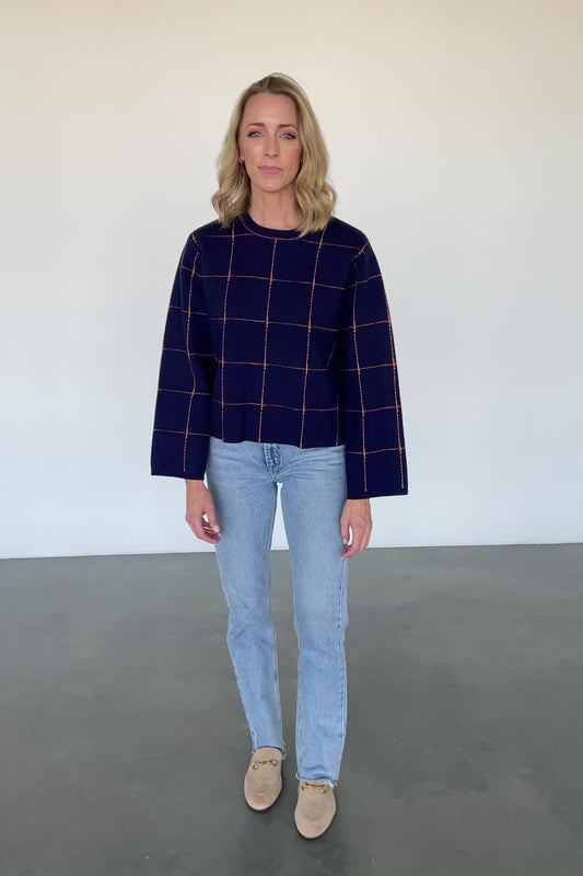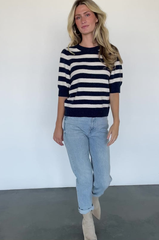 Keira Sweater Top | Navy + Ivory Stripe