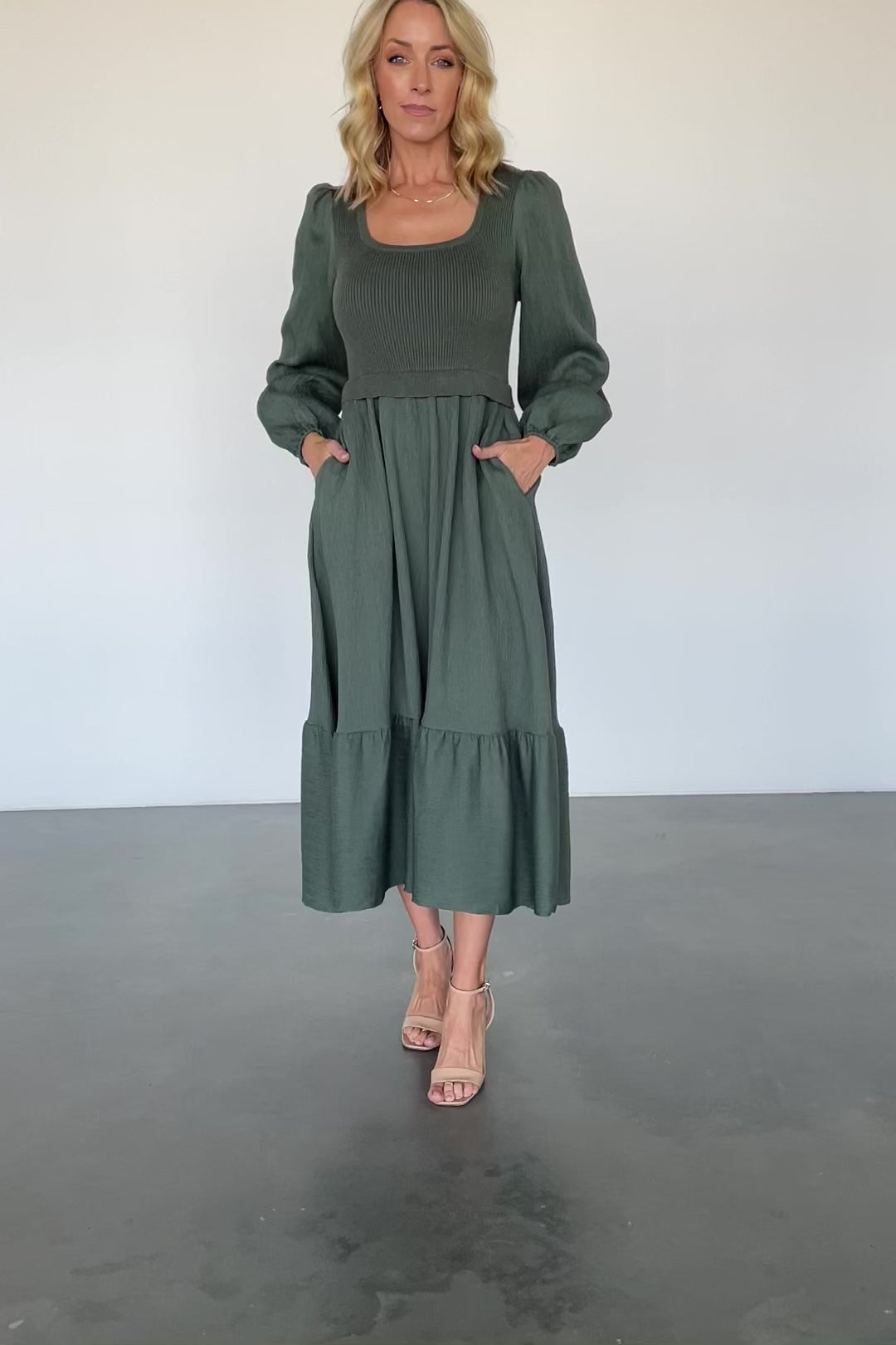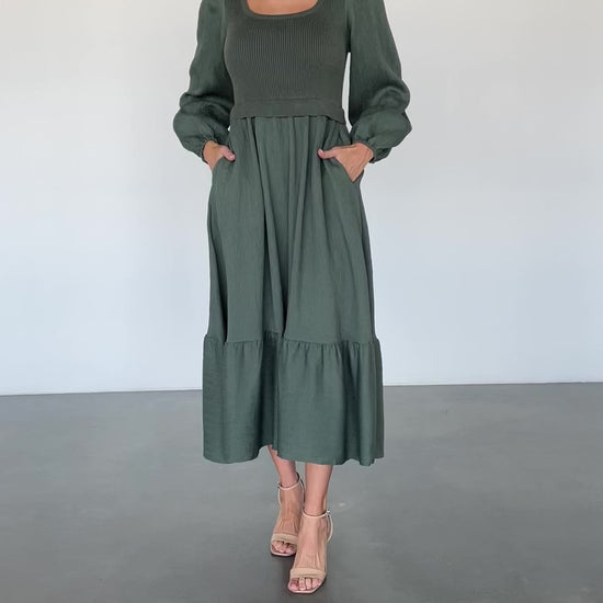 • Please note: The dusty green bodice and skirt are not an exact color match, creating a soft contrast for a naturally styled look.