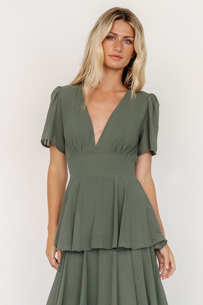 We now offer swatches of our Montaigne Ruffle Maxi Dress!