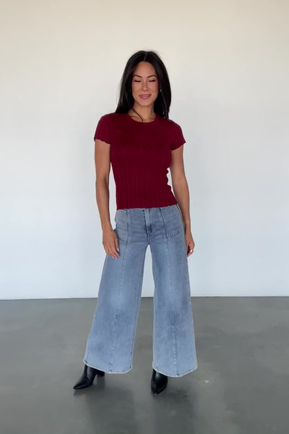 - Paired with our Emmi Mid Rise Wide Leg Jeans in Medium Wash