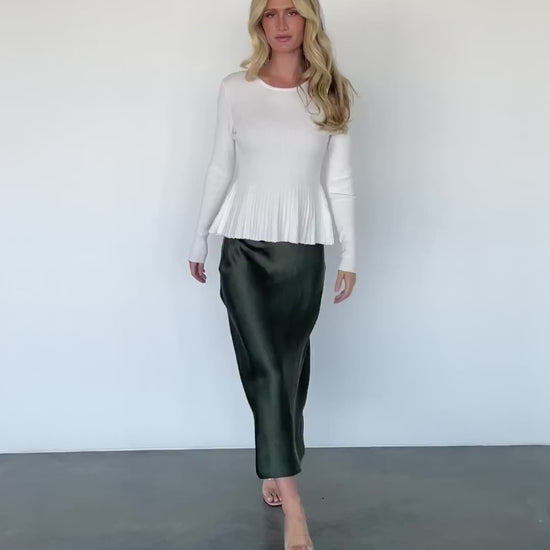 - Paired with our Celeste Satin Midi Skirt in Dark Green