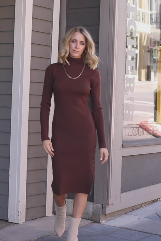 Caldwell Ribbed Turtleneck Midi Dress