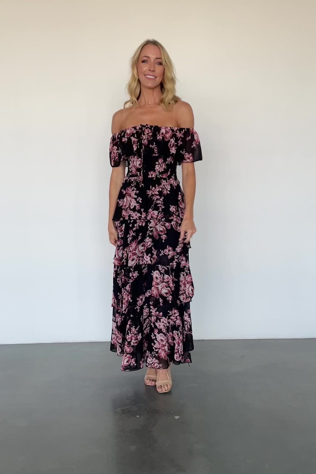 Carina Off Shoulder Maxi Dress | Nude + Rose