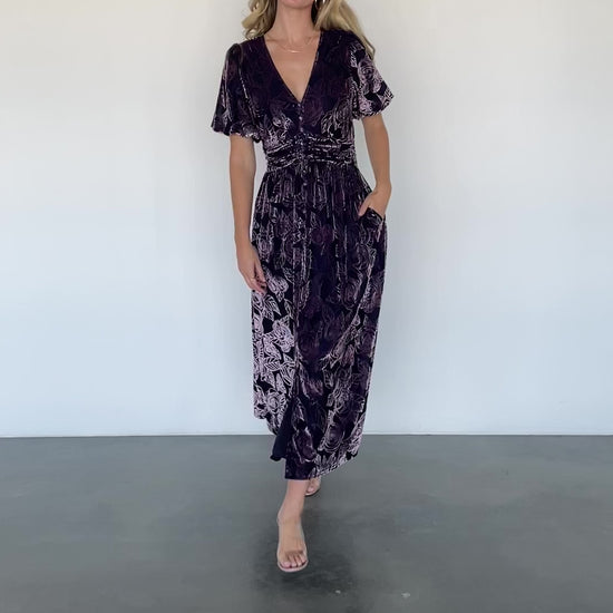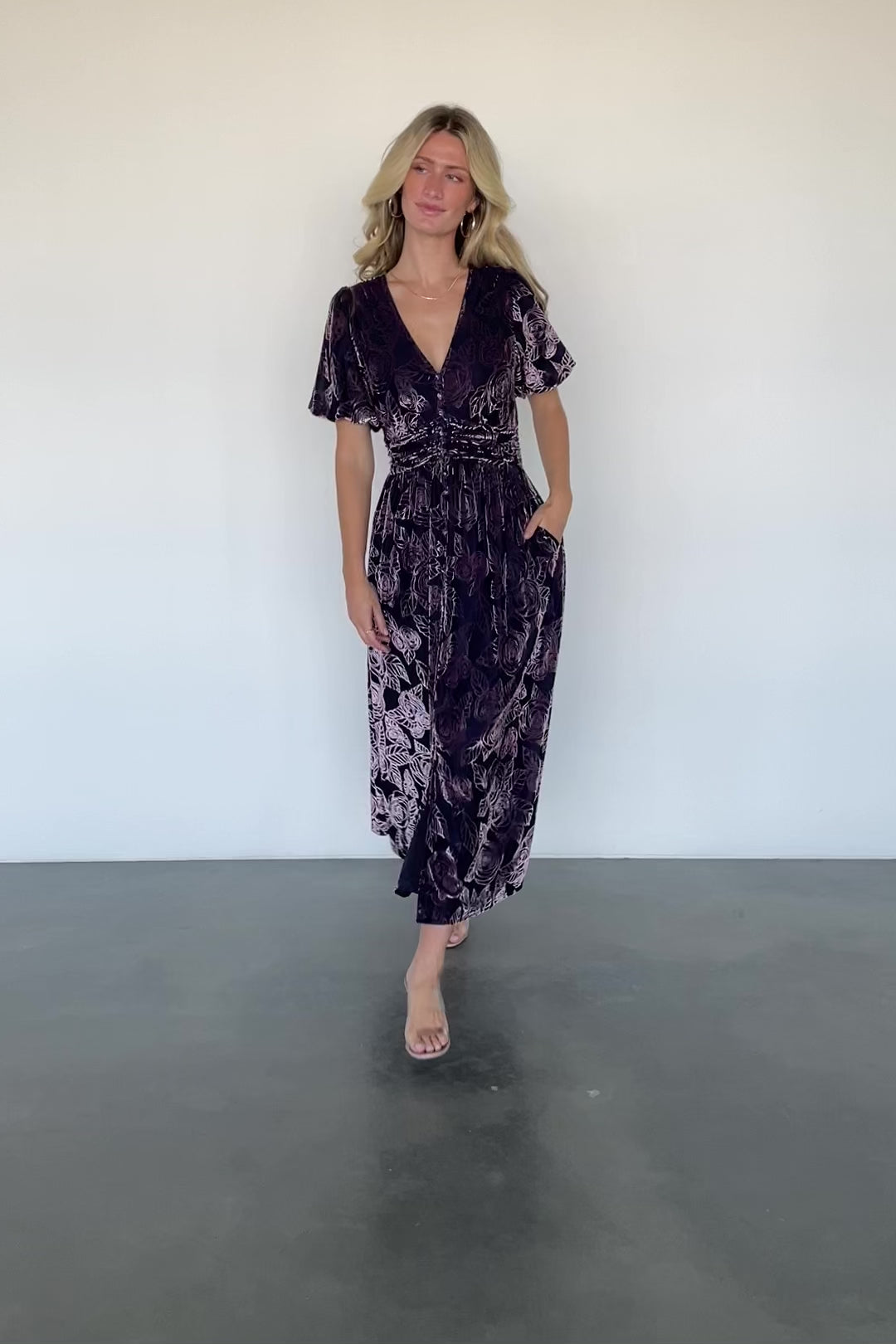 - Deep purple-blue color that pulls black in some lightings, with lilac velvet roses