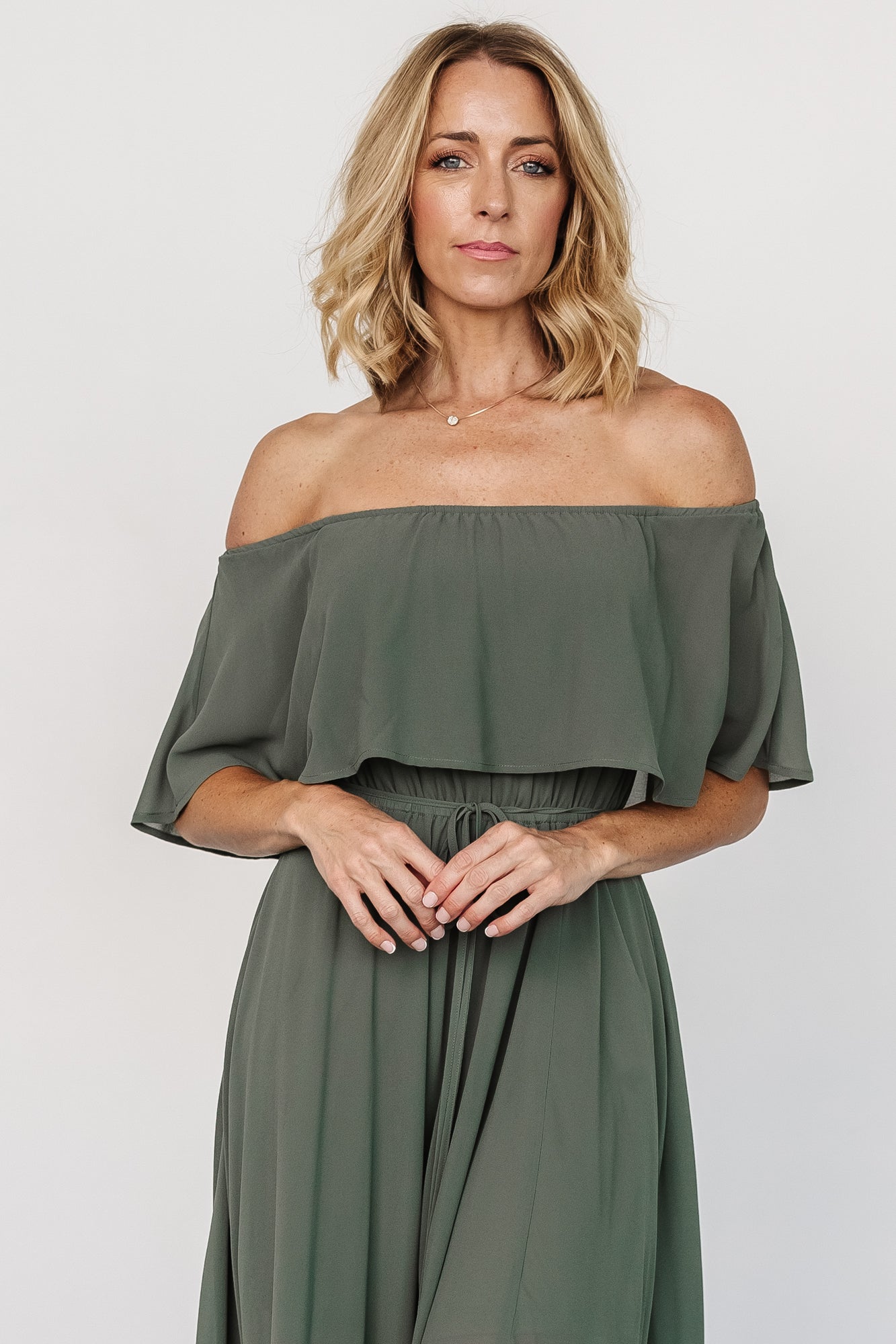 We now offer swatches of our Victoria Off Shoulder Maxi Dress!