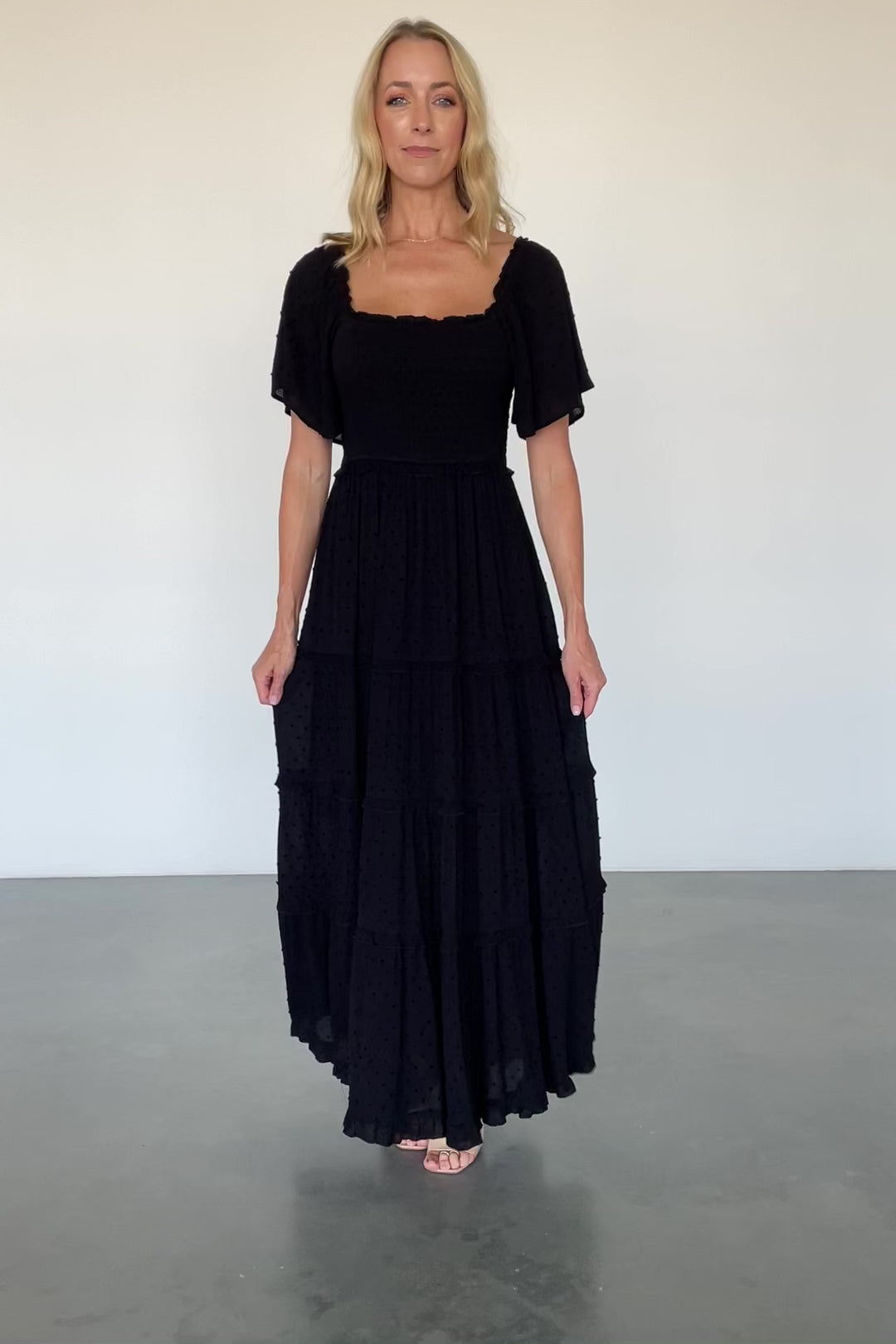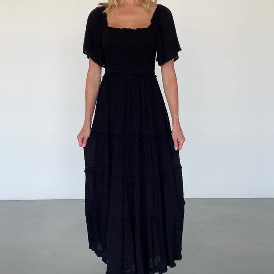 Lenora Smocked Dotted Maxi Dress | Dusty Blue