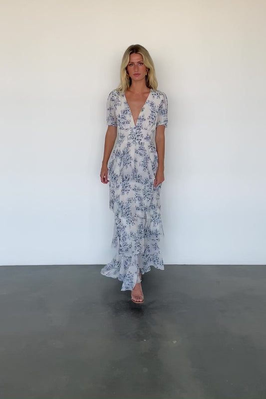 Montaigne Ruffle Maxi Dress | Light Blue Floral