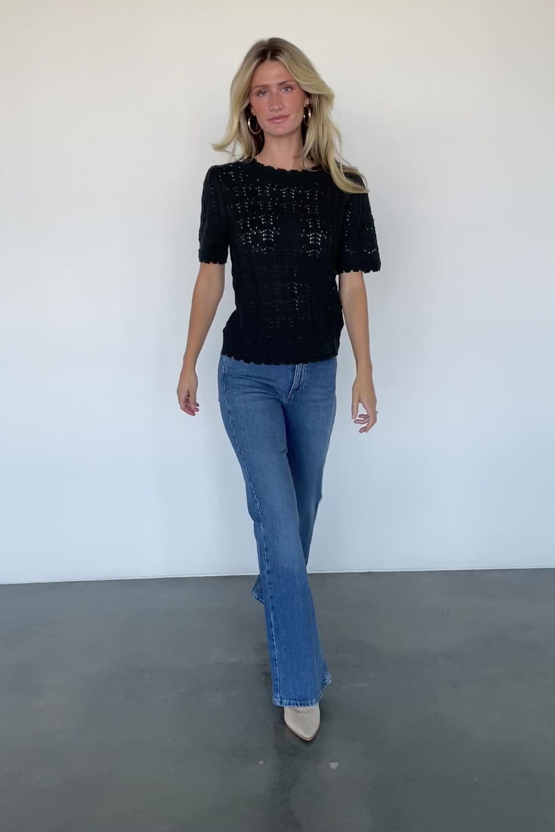 - Paired with our Brody High Rise Wide Leg Jeans in Light Wash and our Michel High Rise Bootcut Jeans in Mid Wash