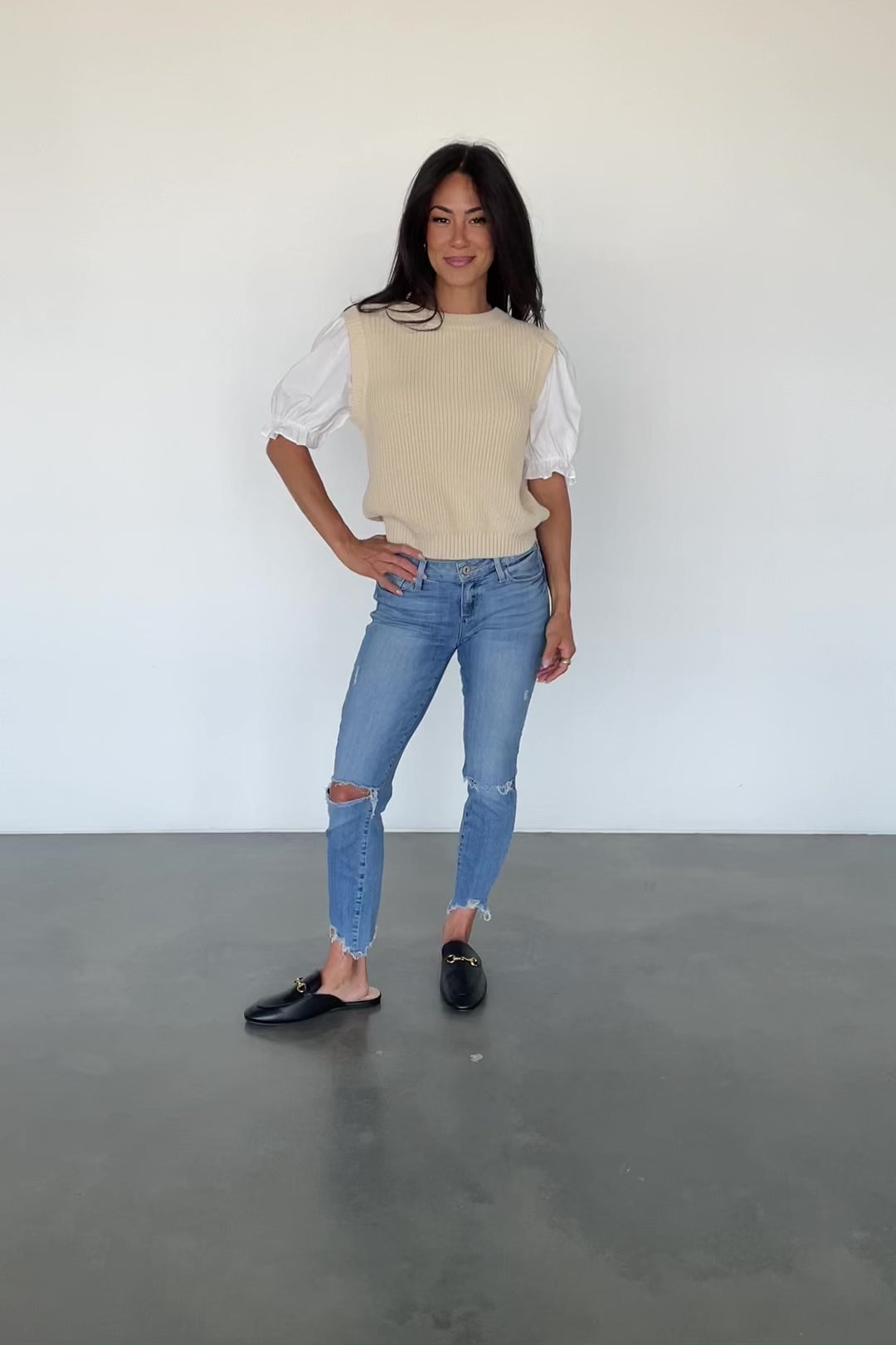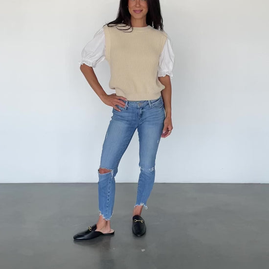 - Cream sweater vest with attached cotton Ivory accent sleeves
